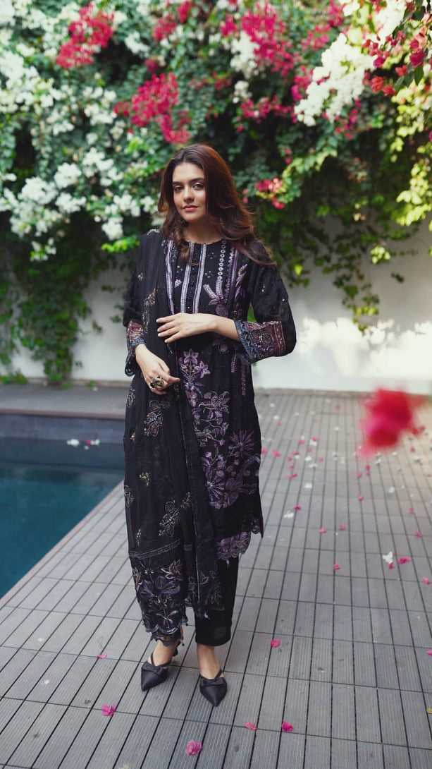 Crinkle chiffon embroidered duppata hand embellishments 2.5 yard ready to