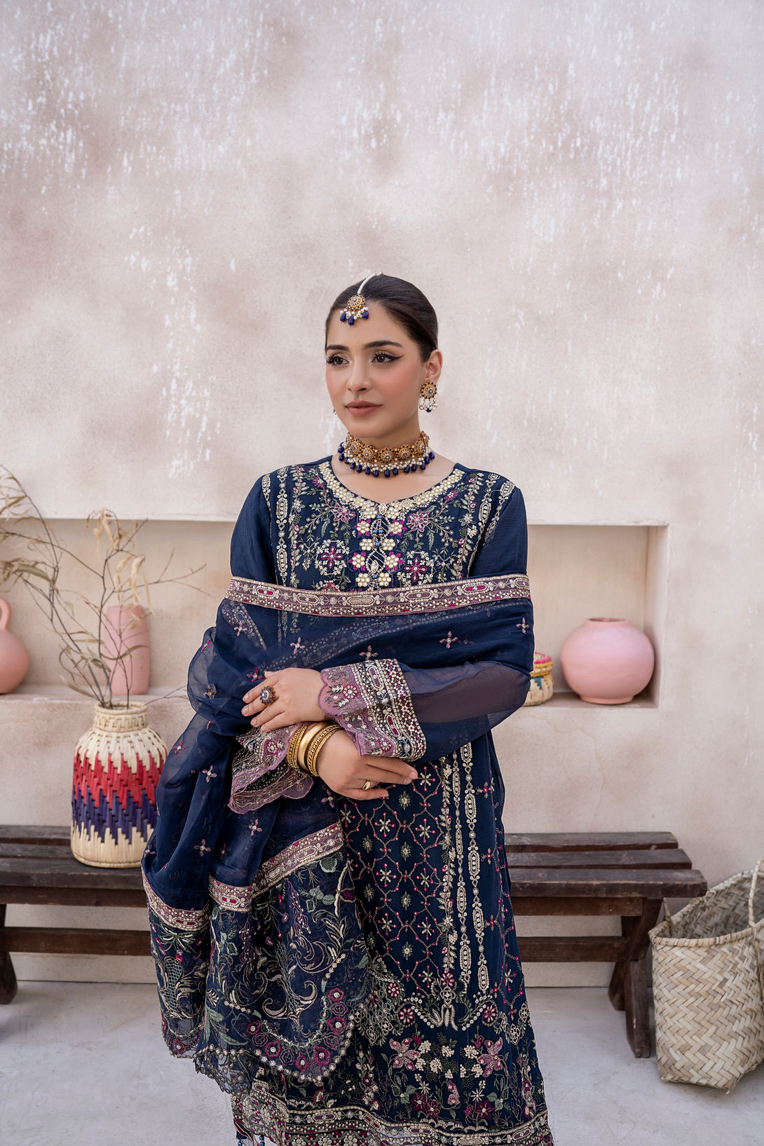 - It includes an embellished organza four-border embroidered cutwork and comes with a ready-to-wear dupatta.