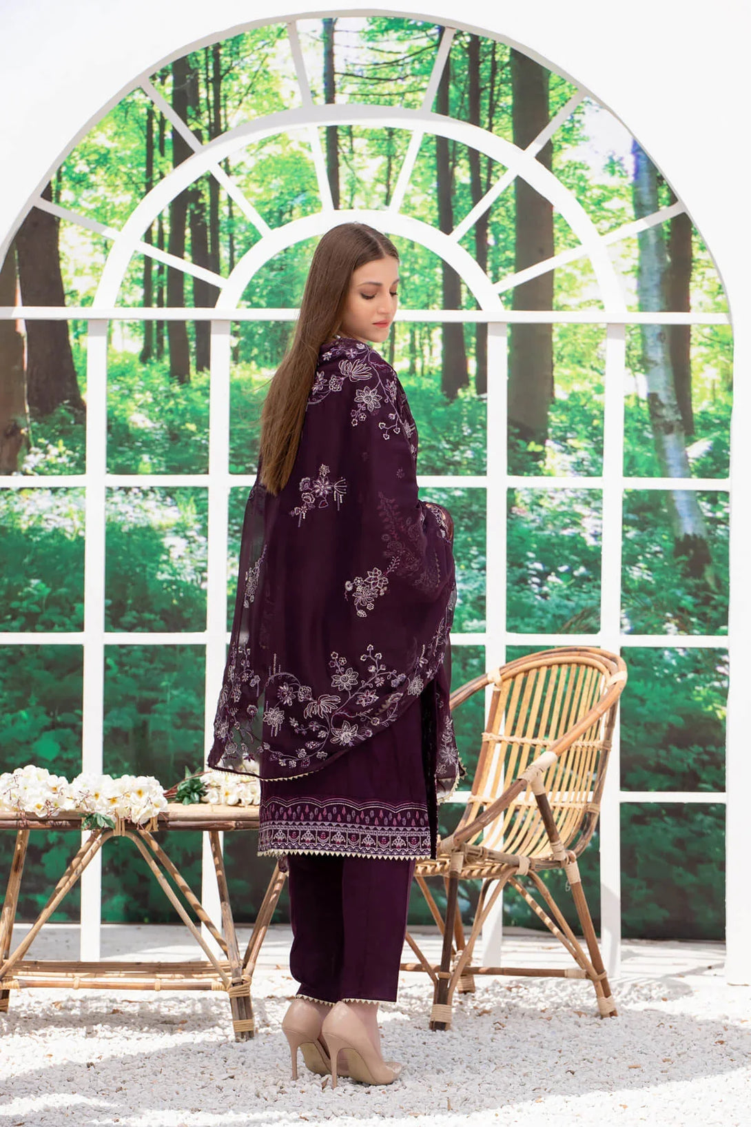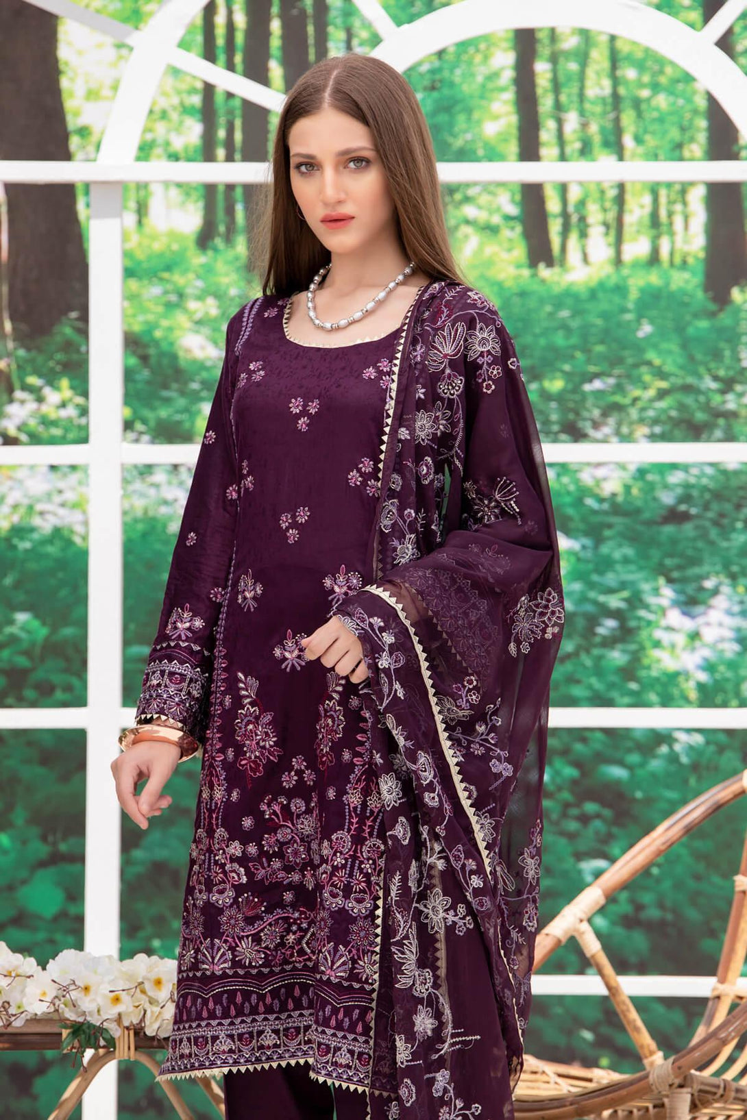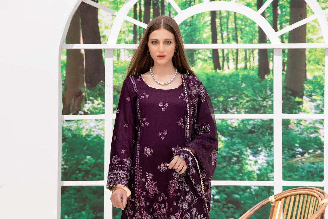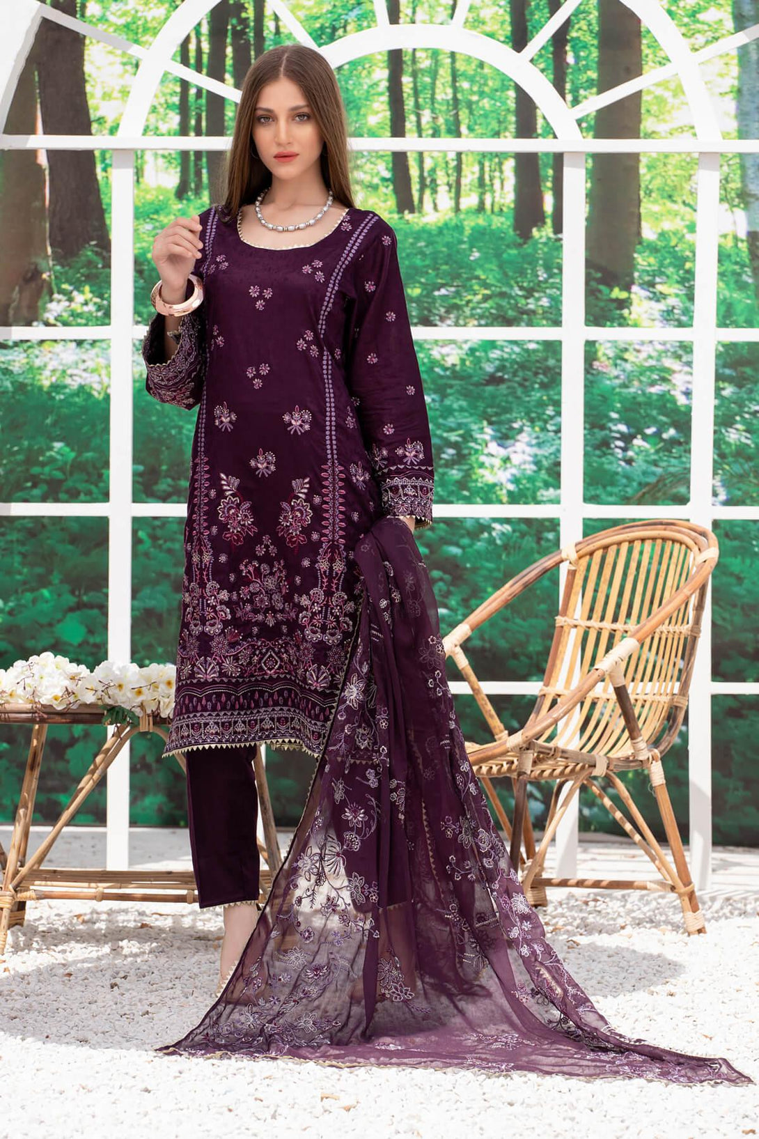 Unstitched embroidered 3 piece suits with chiffon dupatta.