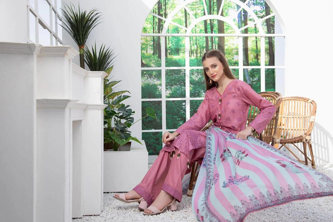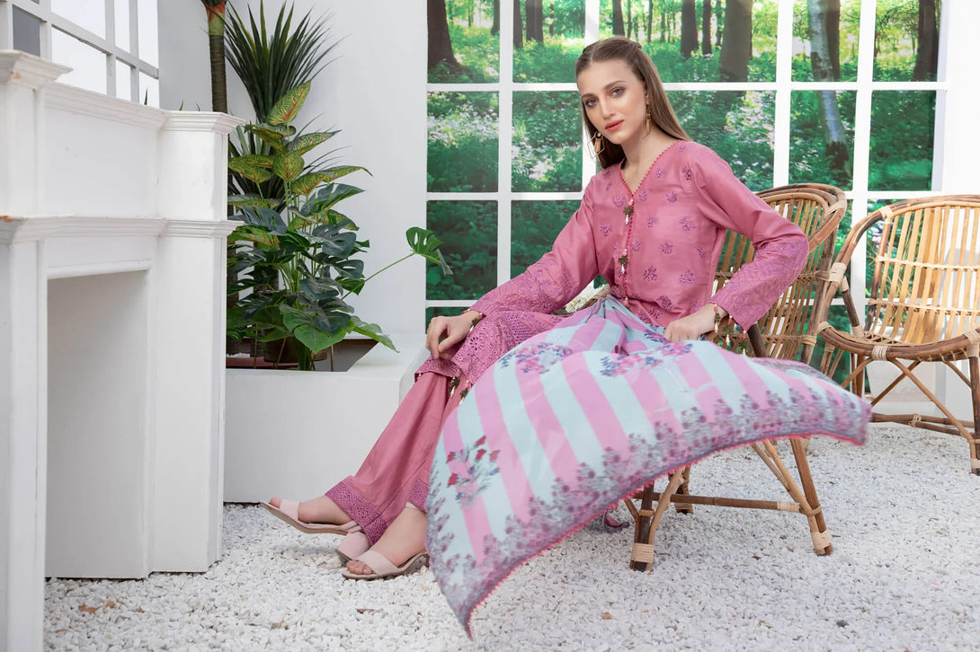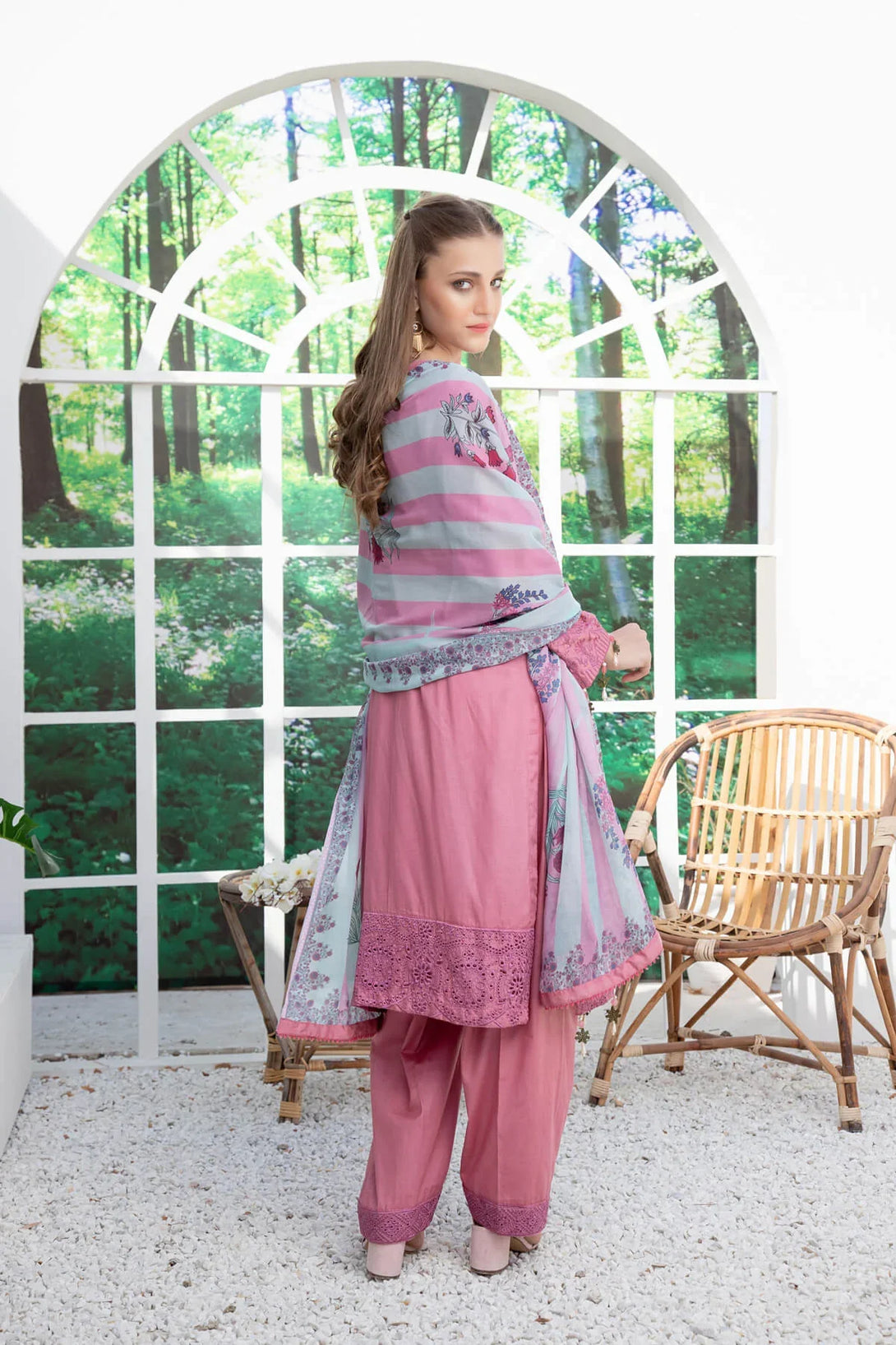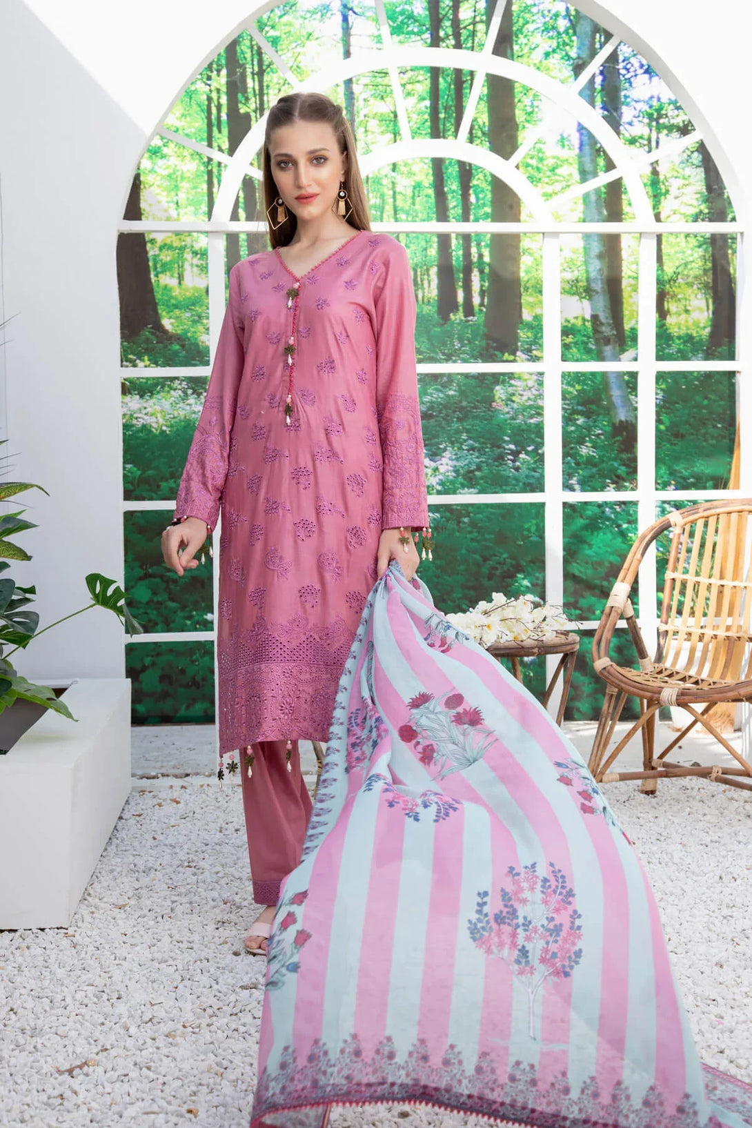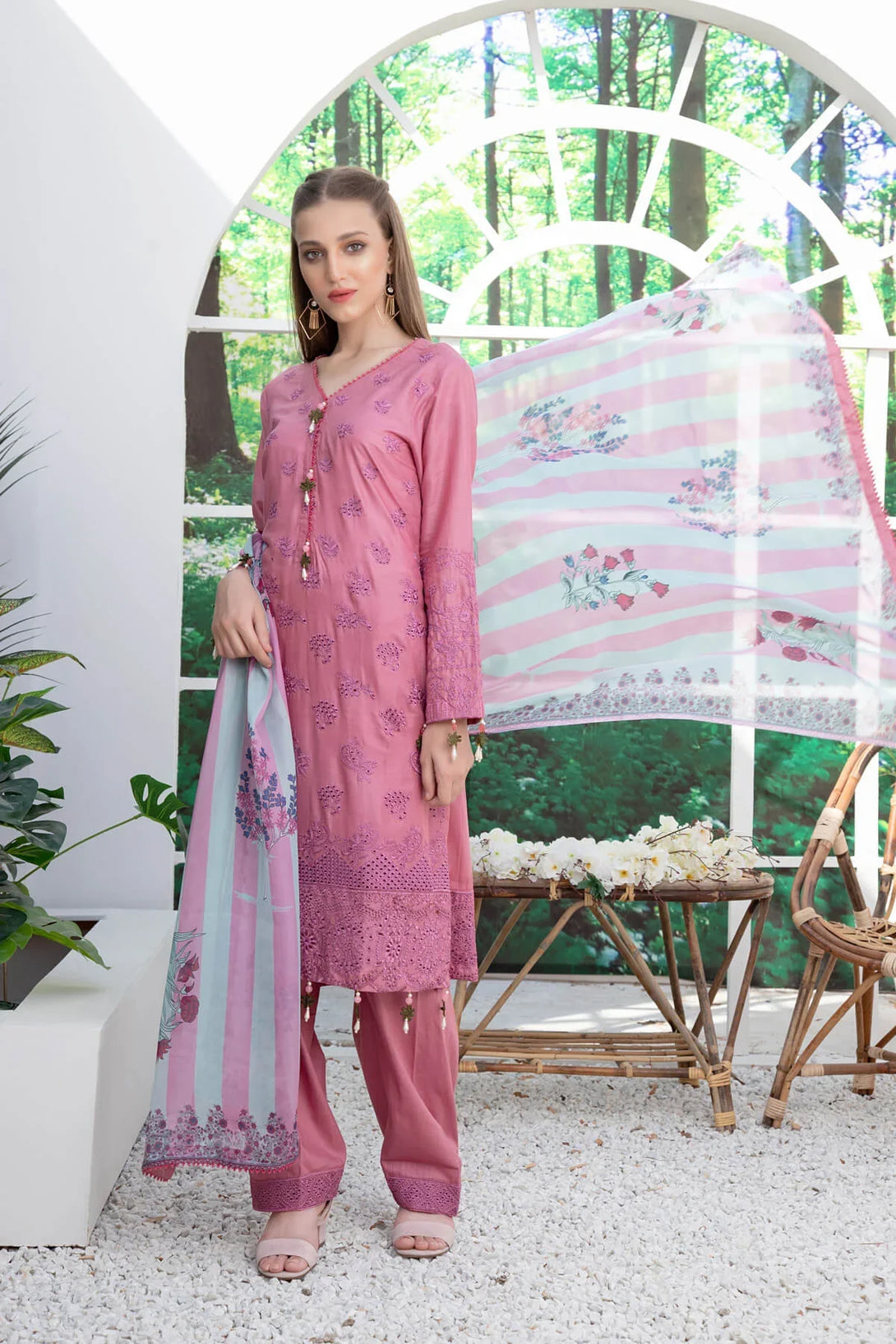 Unstitched embroidered 3 piece suits with chiffon dupatta.