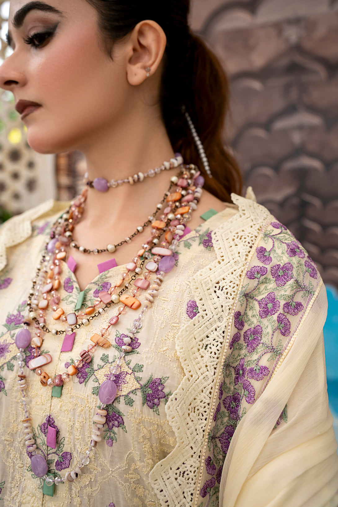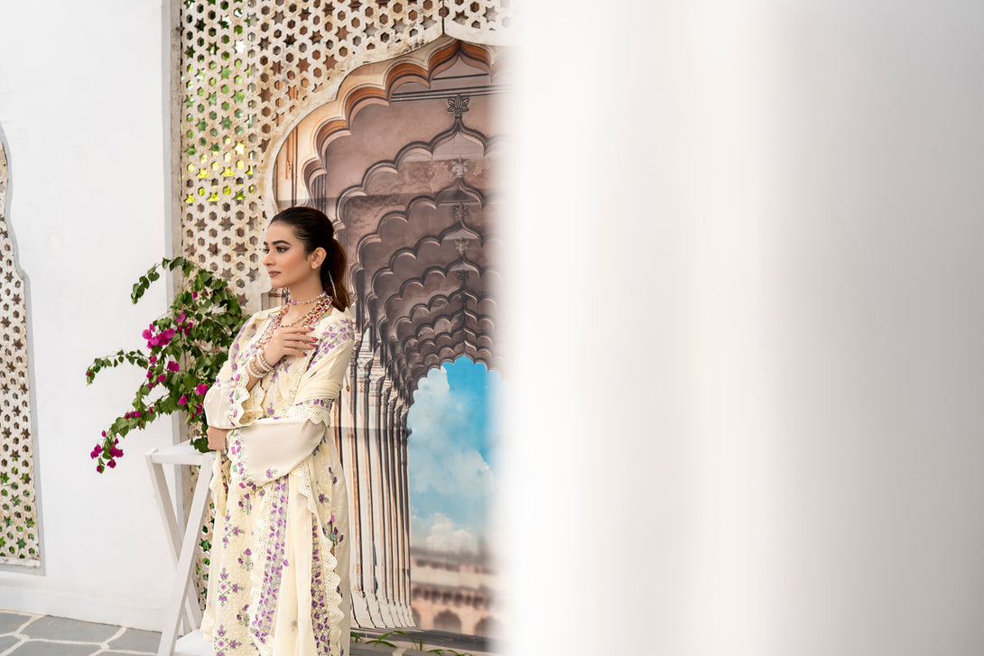 Rang-e-Haya embodies timeless grace and sophistication through its exquisite craftsmanship. Made from premium-quality fabric, this elegant ensemble features delicate embroidery and intricate patterns that reflect pure refinement. The soft pink palette exudes subtle charm, while detailed accents on the neckline, sleeves, and 2.5-meter chiffon dupatta enhance its luxurious appeal. Perfect for festive occasions, family gatherings, and special celebrations, Gulbahar seamlessly combines traditional artistry with modern elegance. Complete your look with elegant jewelry and heels to showcase this statement piece with confidence. The package includes embroidered lawn fabric for the front, back, sleeves, and an embroidered chiffon dupatta.