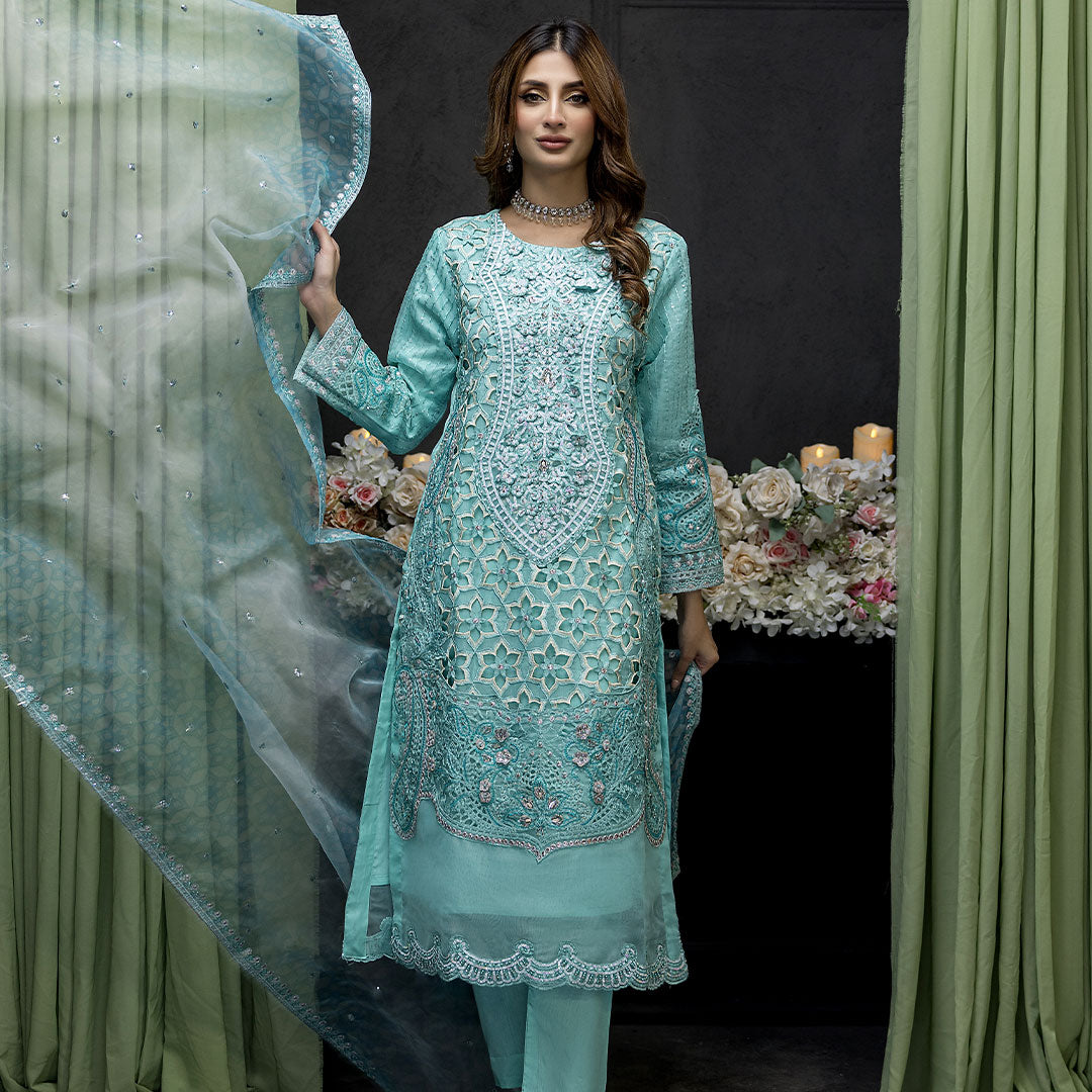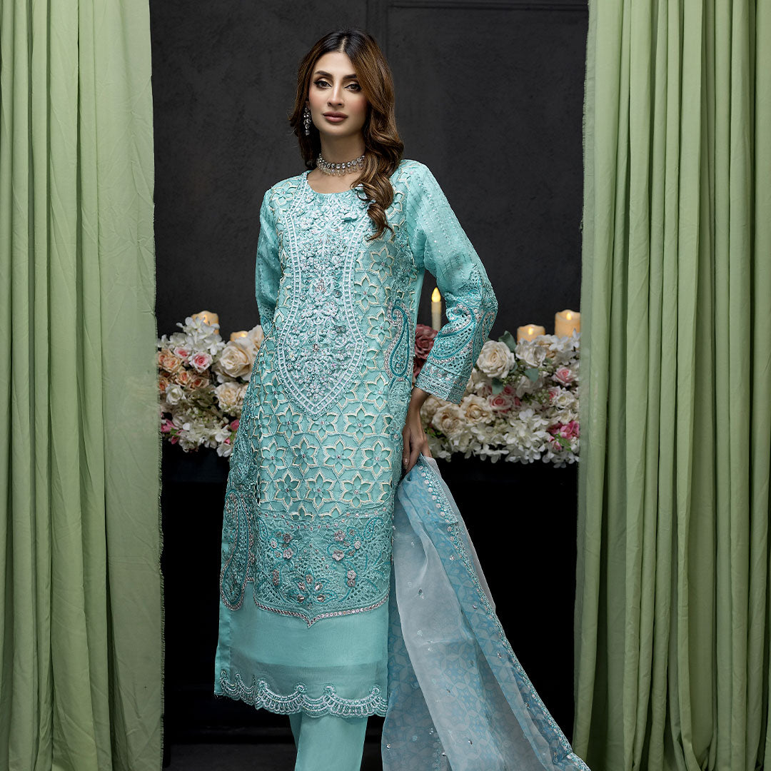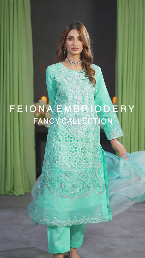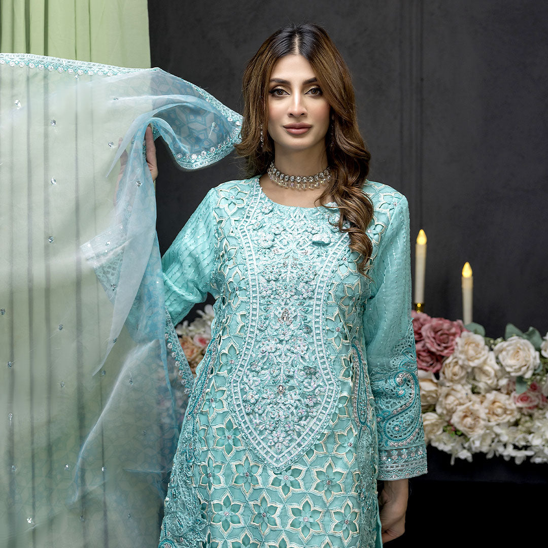 Shirt organza semi stitich embroidered shirtpure viscose inner attached and hand made adda work all embellishments attached