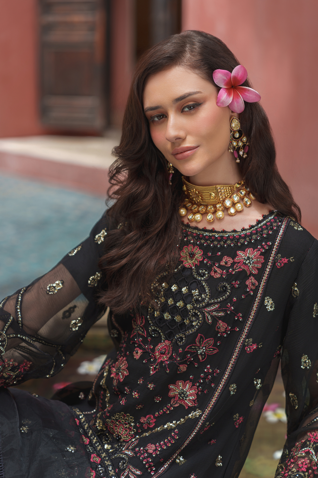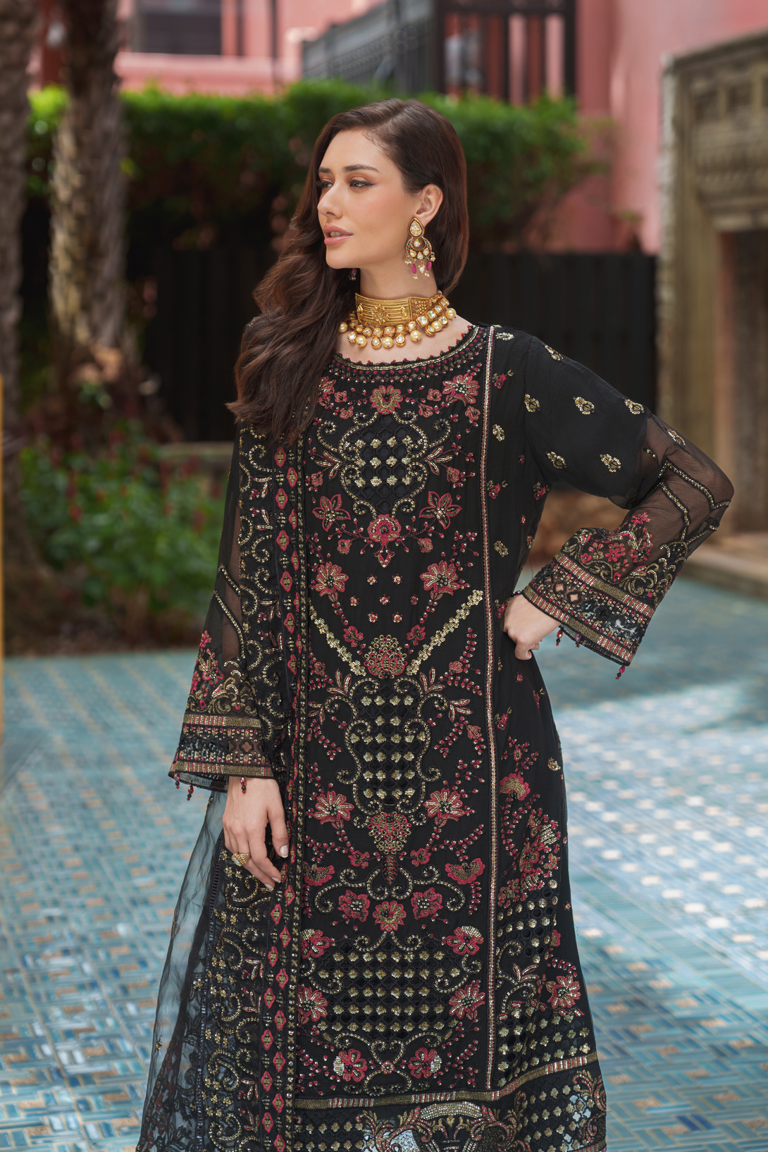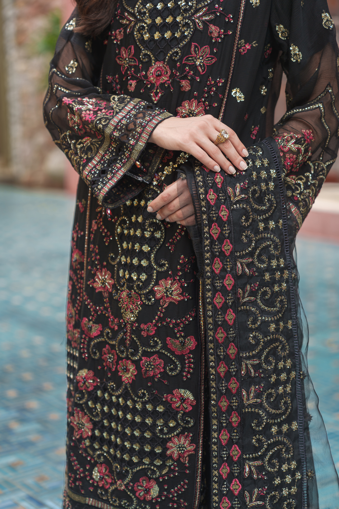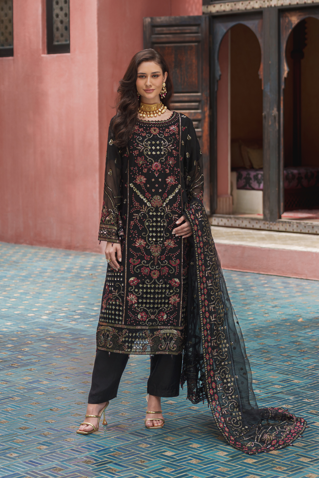 Experience the elegance of ZFEC-008 from Zainab Fazlani’s Elysian Luxury Chiffon collection. This semi-stitched shirt features intricate heavy embroidery paired with delicate handmade adda work, delivering refined craftsmanship. Complementing the shirt is an exclusive chiffon organza dupatta, richly embroidered and fully embellished for a sophisticated finish. The ensemble is completed with raw silk jacquard trousers, offering a textured contrast that enhances the overall luxurious appeal. Perfect for special occasions, this outfit beautifully balances traditional artistry with modern design.
